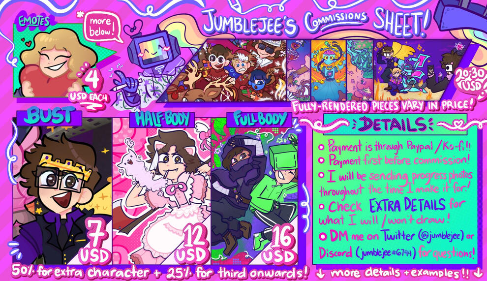 ▸Mode of payment: Paypal / ko-fi in either USD/PHP!▸Communicate with me either through Discord or Twitter DMs for progress regarding the commission!